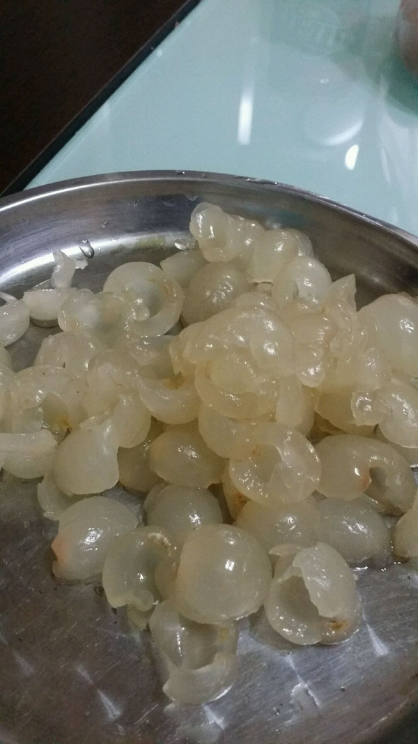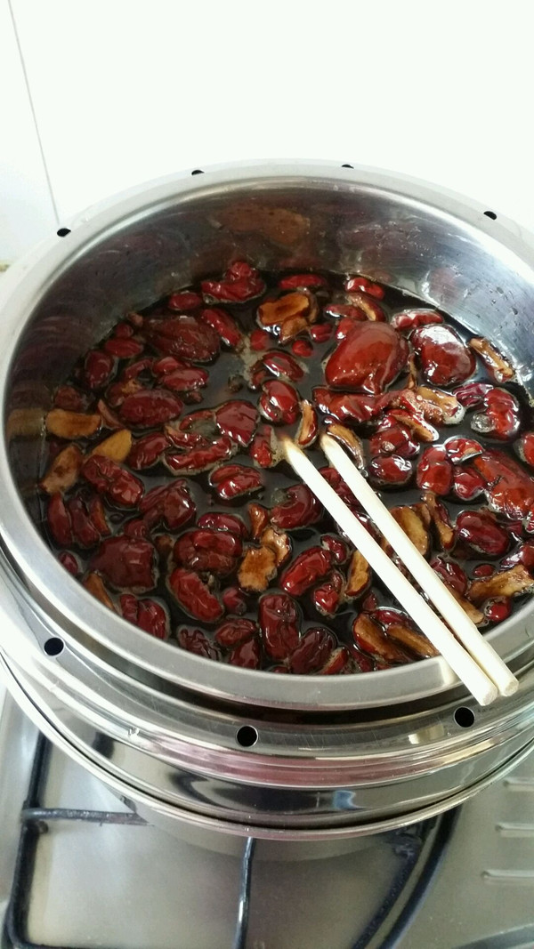 洗净晒干放入泡好的阿胶,放入250克的冰糖,隔水蒸30分钟