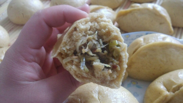 发酵粉和泡打粉用少许温水化开,为了改善口感,我们用温牛奶和面。玉米面,荞麦面,燕麦面,百面1:1:1:1的比例加入,和成稍微松软一点的面团。醒发5小时左右,发的时间长一点回头蒸出来的萝卜丝包口感好,面皮更加松软!