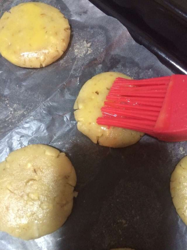 用刚刚剩下的鸡蛋液给每个桃酥表面均匀的刷上蛋液