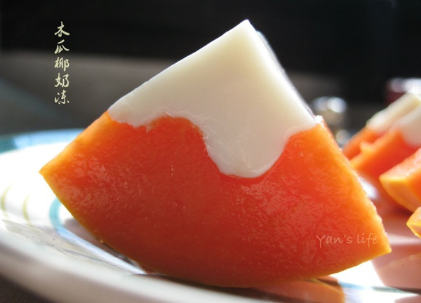 再把椰浆倒回木瓜里 盖上保鲜膜 冷藏三四个小时