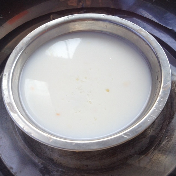 把椰浆先倒进木瓜里 取合适的量 再倒到碗里 放入吉利丁片 隔热水加热至吉利丁片融化
