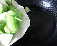 锅中留余油,爆香蒜末,放入丝瓜煸炒