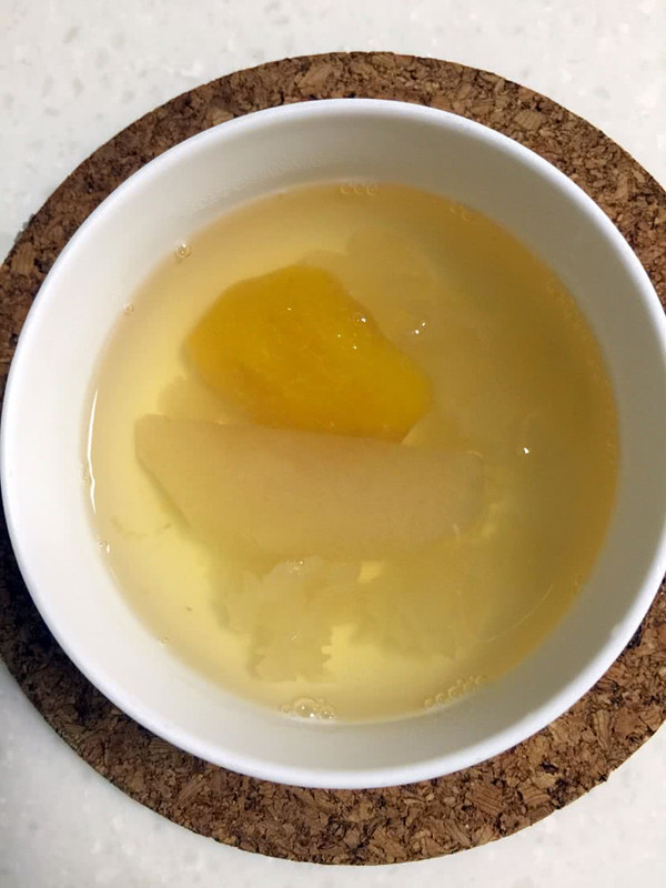 枇杷、雪梨洗净削皮去芯~(注意等雪耳煲差不多1小时才弄,不然水果很易被氧化变色)