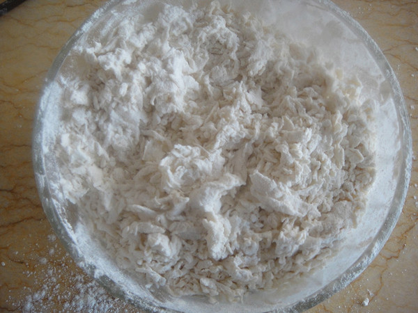 荠菜里加入2克盐和一汤匙香油拌匀(荠菜是我事先焯烫后斩细的,所以没有照片)