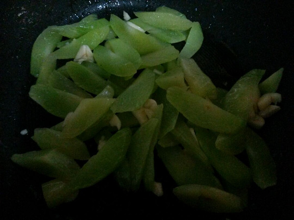 用煎腊肠的油炒春笋,加蒜瓣,炒几下放焯过的木耳,加盐,鸡精炒匀