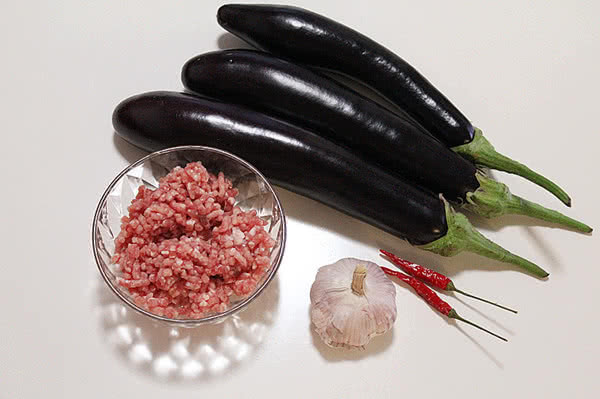 将茄子切成约七八厘米的长条、蒜切末、小红辣椒切段、豆瓣酱剁碎备用。