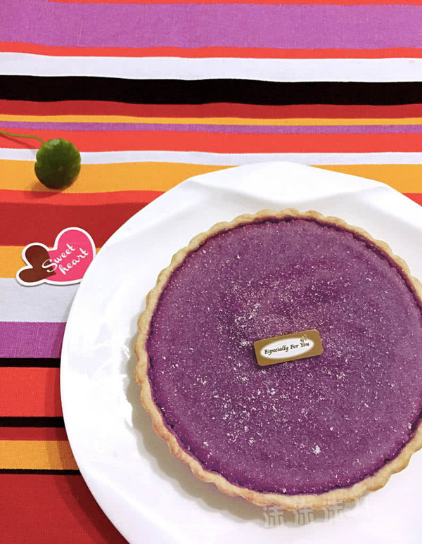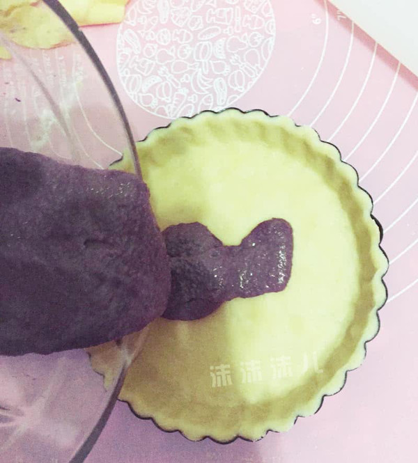 将静置好的紫薯派馅倒入派盘中,不要太满,8分满就可以。此时200度预热烤箱。