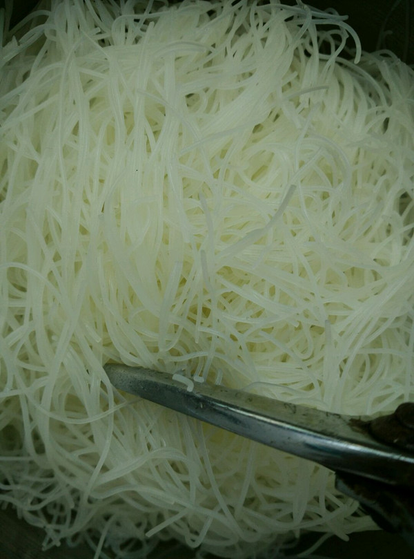 煮到粉丝变软了加酸豆角和葱花马上出锅。