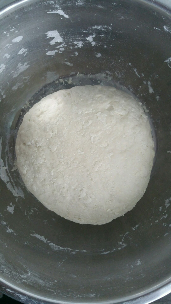 两小碗面 加入一勺盐,加入水,揉成光滑的面团。