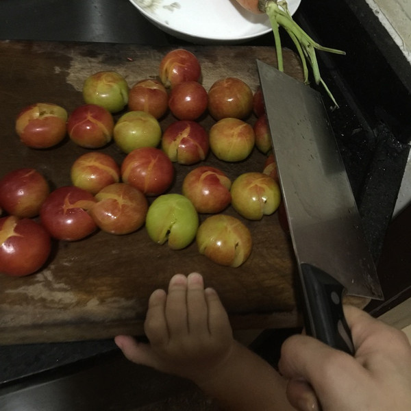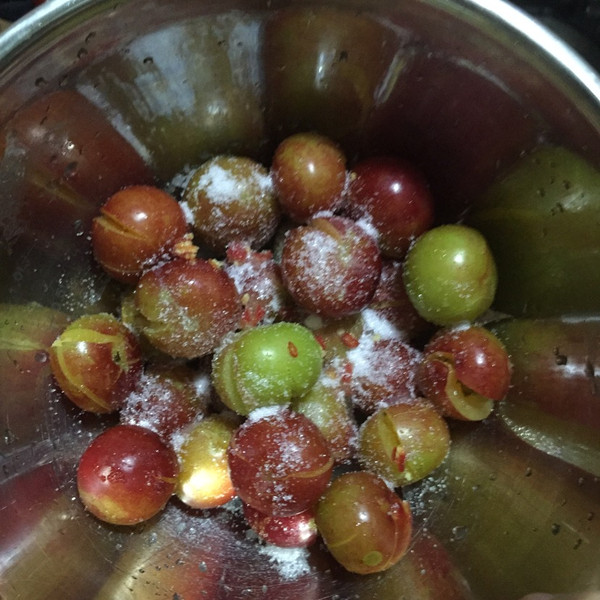 外面摊贩卖的李子呢用辣椒盐腌制,口味咸辣更明显,也可以买来腌制。不需要自己配料。