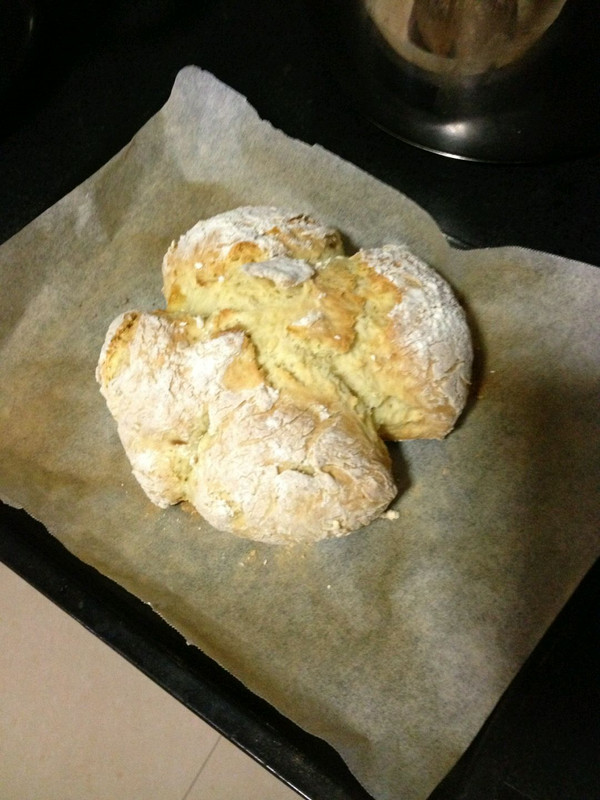 先说下用料吧,面粉用的是普通的中筋面粉,你可以把其中的一半换成全麦面粉;还有buttermilk,它名字里虽然有butter,但是和黄油没有半点关系,这是一种酸性的牛奶,在制作过程中遇到小苏打产生二氧化碳,使面包膨发,如果超市里买不到buttermilk的话,就用260克牛奶加入15毫升柠檬汁来代替,这个方子里用的buttermilk有210克,在做buttermilk的时候比例对了就可以,我数学不好,就不给大家计算了。