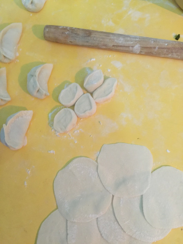 然后把切好的芹菜放进沸水里然后拿出来,把水分挤干