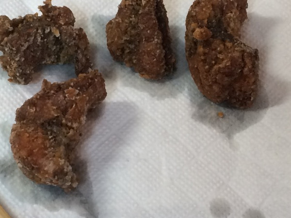 把炸好的鱼肉放到纸上吸去多余的油渍。
