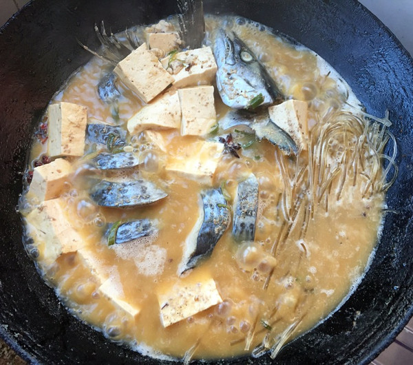 鲅鱼放入汤中,切好的豆腐一起放入进去同时炖,这样味道会更加鲜美!