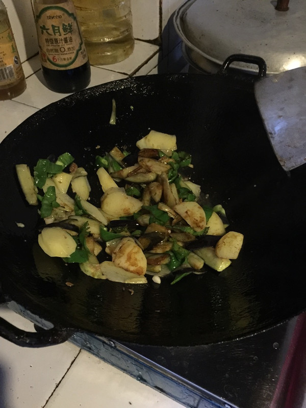 锅中放油,多一点,让茄子在油里过一遍,捞出备用