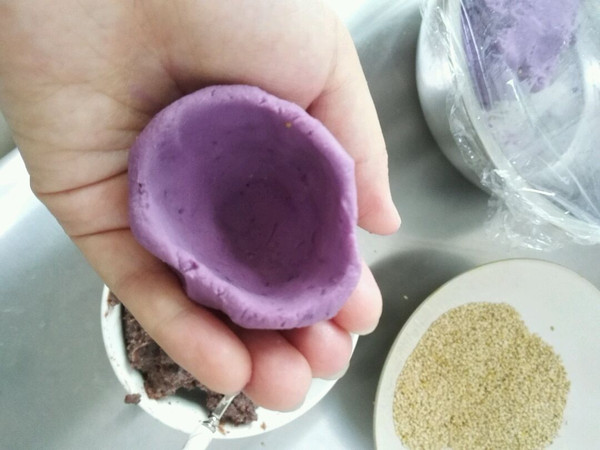 油锅加热到冒泡,放入麻球,开小火,等到麻球浮起就熟了