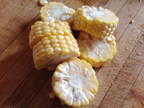 甜玉米洗净切成小段;