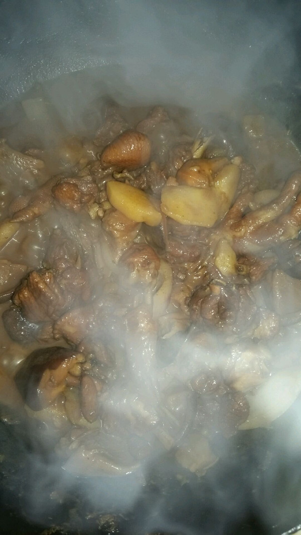 3,40分钟后鸡块觉得熟烂,加盐料洋葱收汁