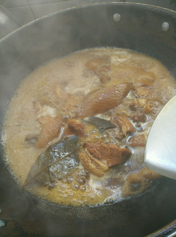 此时猪脚已经非常软糯,筷子能轻松戳入。喜欢有嚼劲的可以缩短五分钟。
