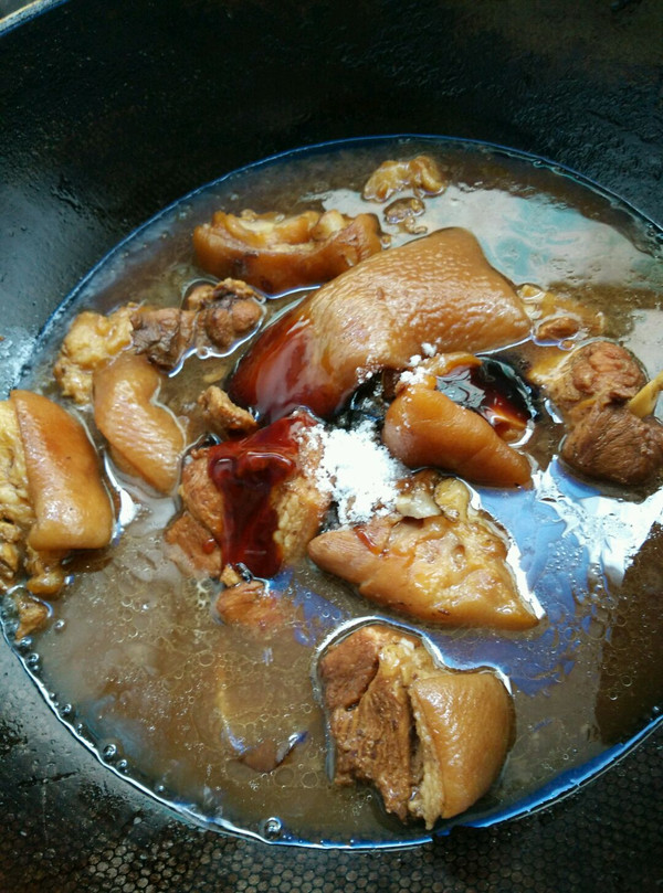 移至高压锅,,放基本能没过猪脚的水炖25分钟。