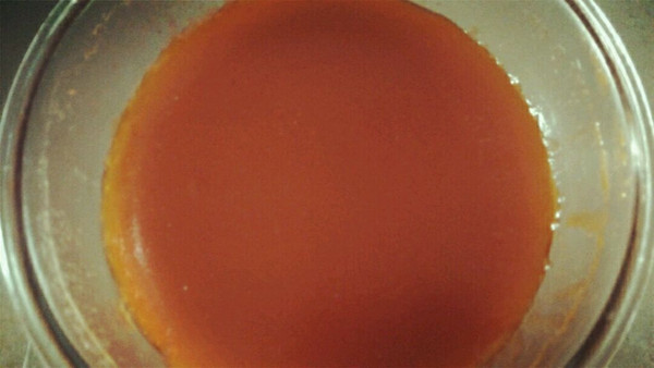 下面来准备糖醋汁~刚刚炸里脊的油,倒出来一些在番茄酱里搅拌均匀~,注意是番茄酱,不是番茄沙司哦!番茄酱比番茄沙司浓稠,颜色较暗,番茄含量更高,味道比较淡。