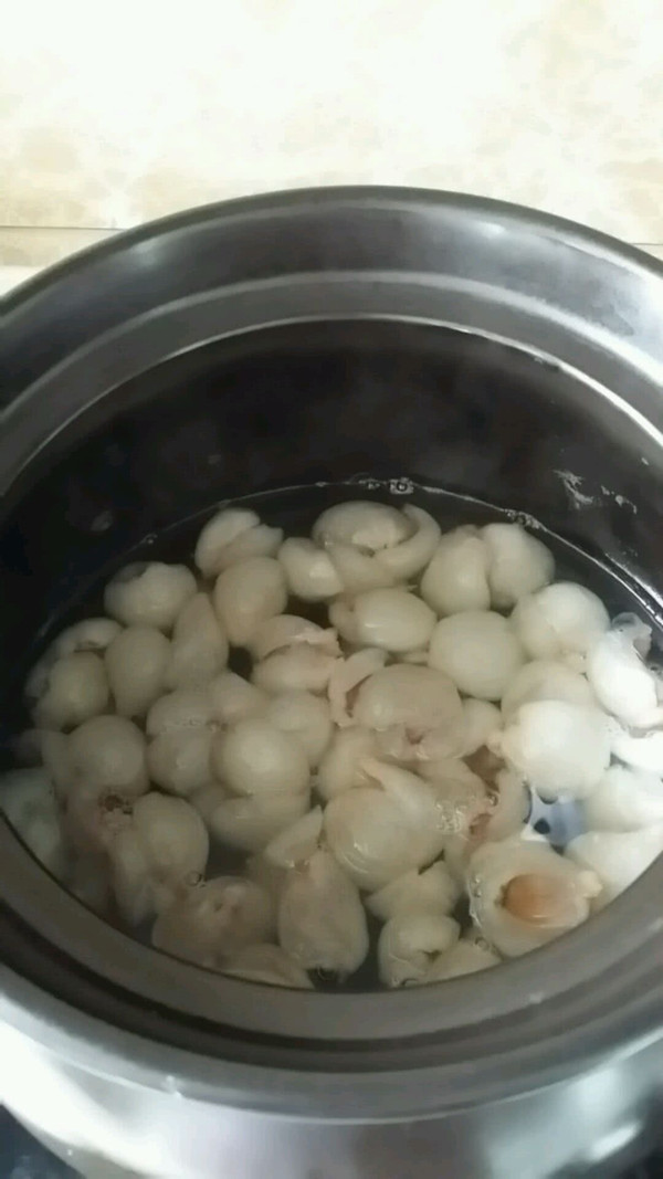 沙锅洗净不能有油污,放入水。不要太多只要与荔枝齐平就行