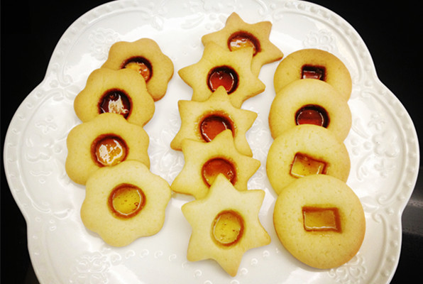 放入预热到180℃的烤箱,中层上下火180度4分钟,转150度5分钟。直到中间的水果硬糖溶化即可出炉。