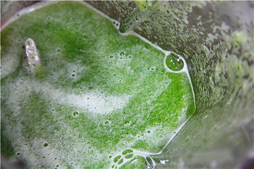 将黄瓜放入料理机中,加入约170ml的凉开水,搅打成黄瓜汁