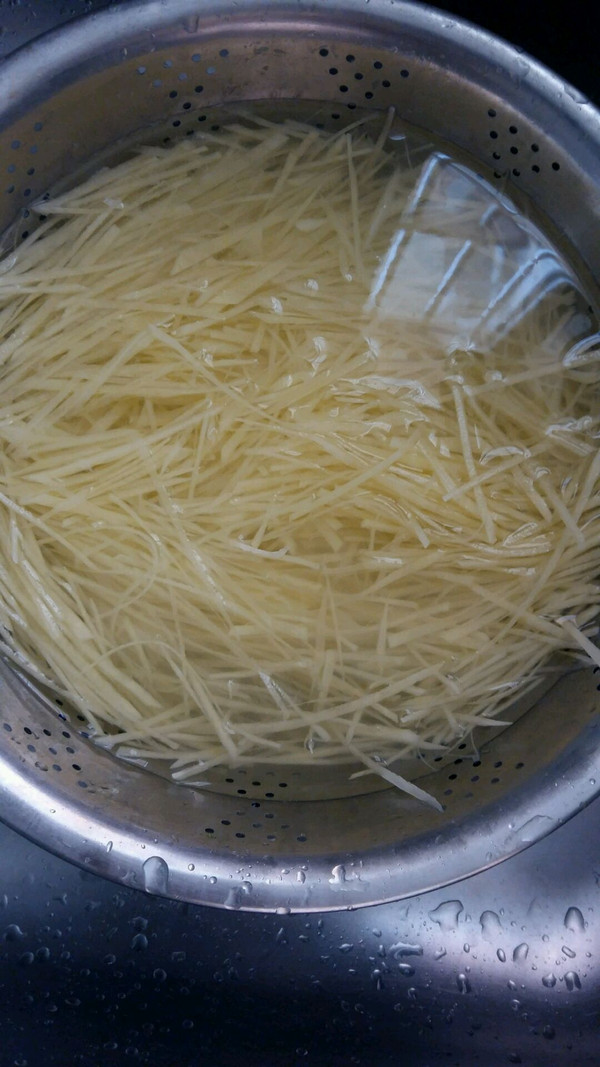 切好丝之后放到水里浸泡一下,洗去淀粉。