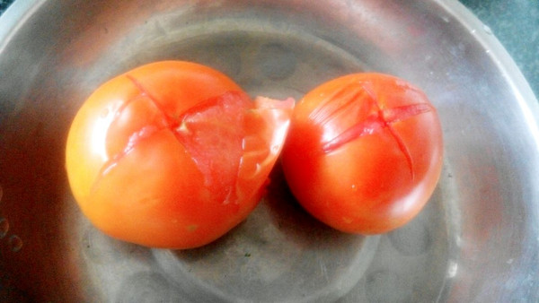 番茄开水烫烫,开十字花去皮