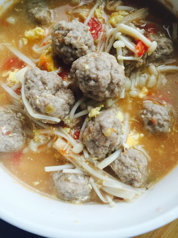 肉馅里加入蛋清,淀粉,姜沫搅拌均匀捏成肉丸团