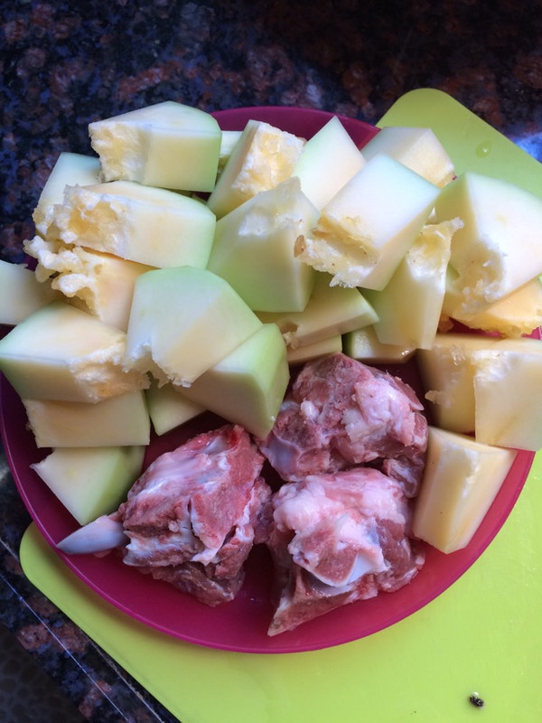 木瓜削皮去瓜子切小块备用,骨头洗干净沥干水分备用