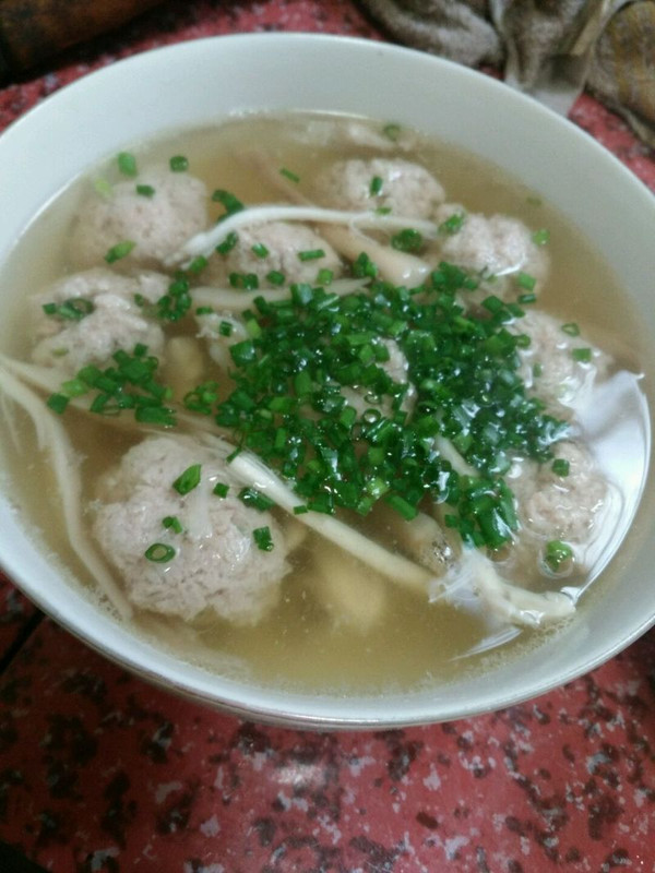 锅里的水开后,把肉末揉成丸子,轻轻放入水中