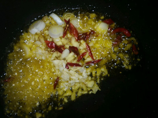 配料:葱花,辣椒圈,姜碎,蒜蓉!葱绿最后用!