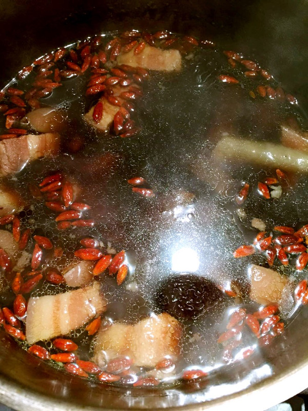 出锅前加入盐调味,加入洗好的枸杞。