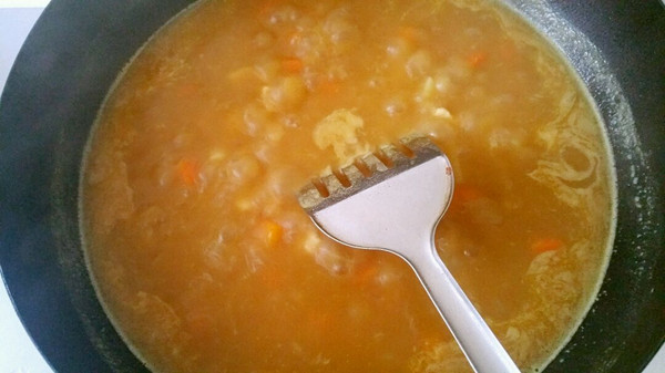 开小火用铲刀慢慢搅拌(小火搅拌是因为怕糊锅)