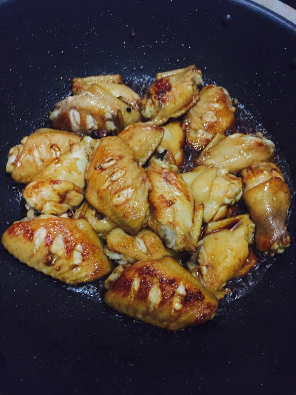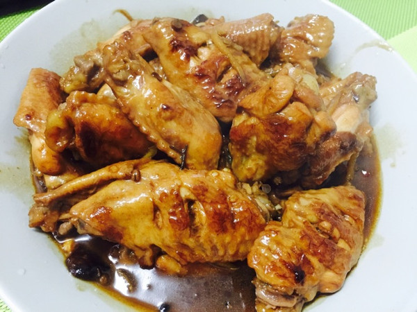 大火收汁,装盘即可。鸡翅软烂,色泽鲜亮。