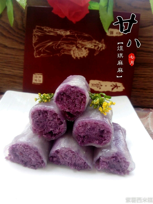 蒸屉提前刷点油,放入紫薯段,留点空间,不用挨太近,锅上汽蒸到透明就好,我蒸15分钟。(没有蒸屉也可以用东西隔水蒸)