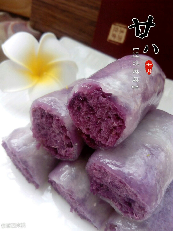 取一小团西米面,擀面杖擀长条 ,擀越薄越好,蒸完越透明。