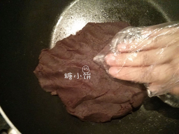 过筛了的红豆沙部分加白砂糖60G和植物油50G搅匀 中大火加热,并且不停搅拌,这款我放的低油,若放足油可增加油量到80G 另外,植物油可以全部或者部分换成猪油,成品的塑形效果会比较好