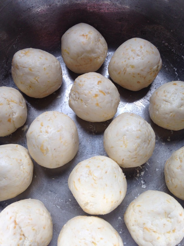 蒸熟后倒掉蒸盘里的南瓜水,趁热加入砂糖压成南瓜泥。