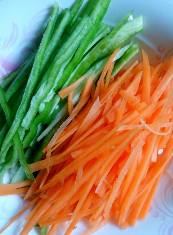 青椒胡萝卜洗净,青椒去籽,胡萝卜去皮