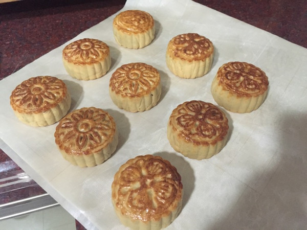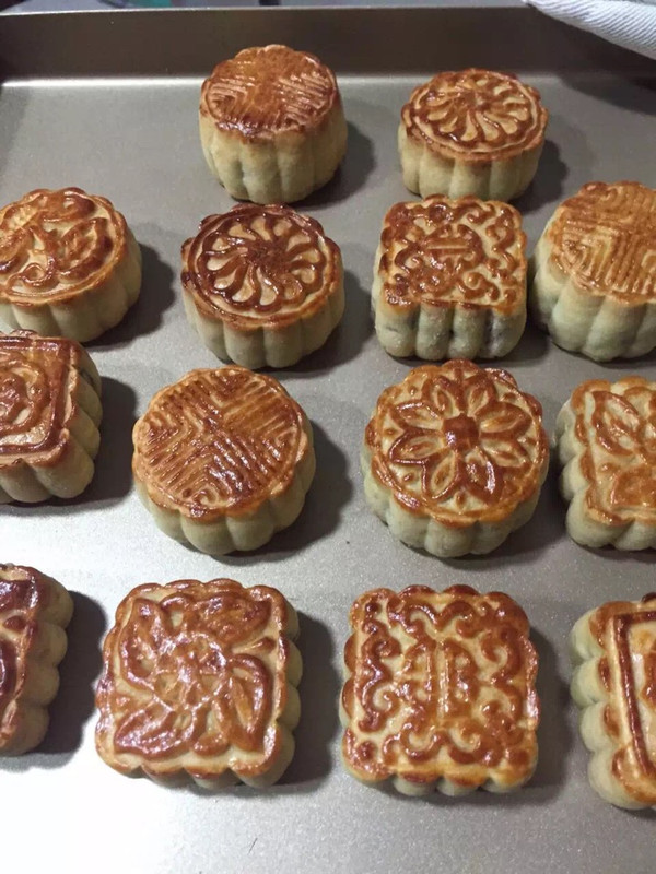 烤箱提前预热。 烤箱上下200度预热10分钟。月饼表面喷上水,不能多,影响花纹。放入烤箱烤7分钟。
