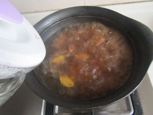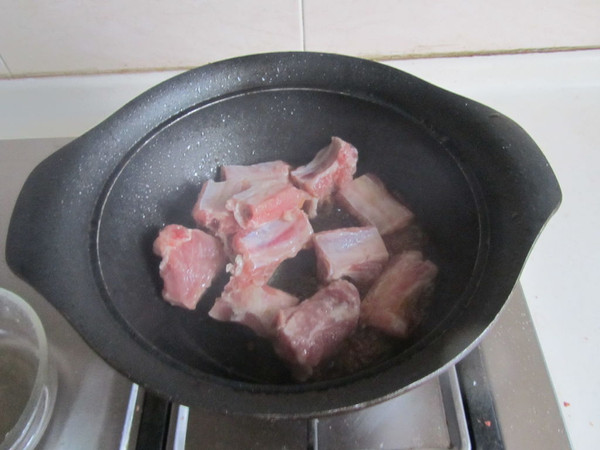 再加入适量的料酒翻炒后加入没过排骨的水;