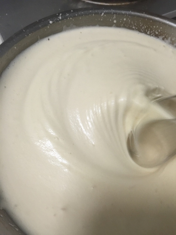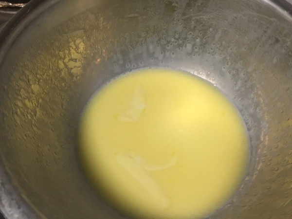 少量的黄油和牛奶隔水溶化后分两三次倒入蛋糕糊中翻拌均匀
