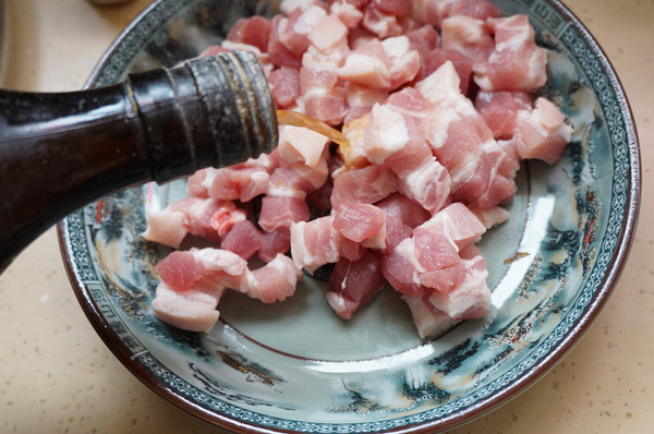 倒入料酒,揉捏肉丁至料酒均匀的融入肉里