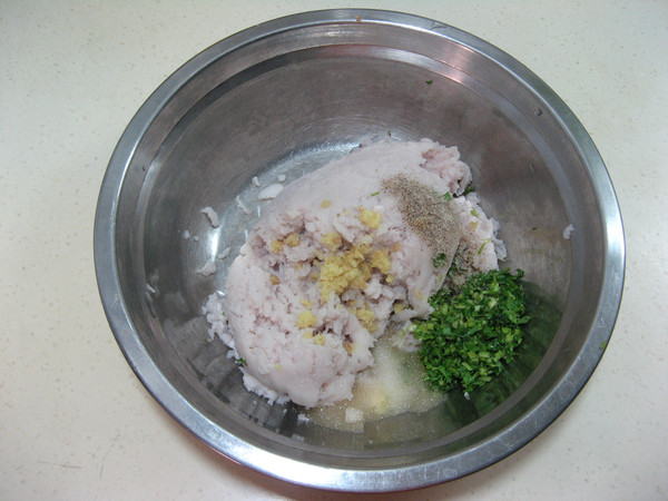 鲜姜磨成姜末,香菜切碎末,根据口味加入盐、白糖、白胡椒粉,少量淀粉