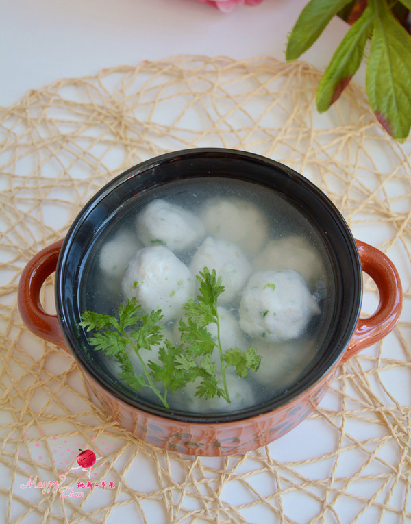 鱼丸和鱼汤盛入碗中,鱼丸汤做好啦