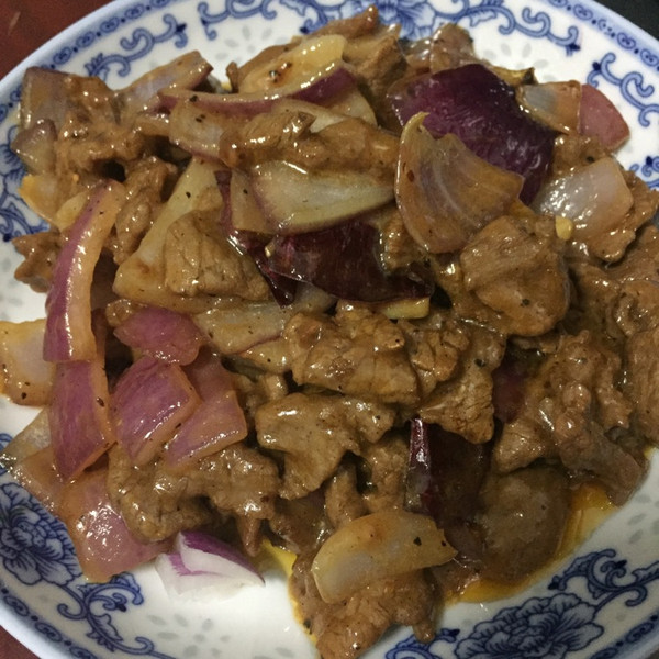 热锅加入适量油,五六成热下肉滑散,不停翻炒,至肉全部变色下洋葱翻炒出香味加入适量黑胡椒酱翻炒均匀即可出锅