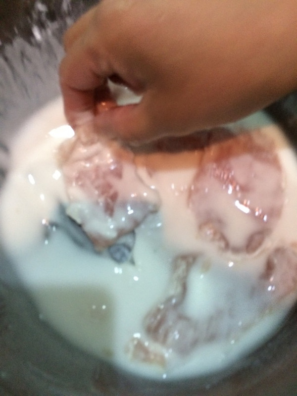 土豆淀粉蓬松度最好,一定要选高粘土豆淀粉。淀粉加点水搅匀,里脊肉切大片,抓匀,挂浆。